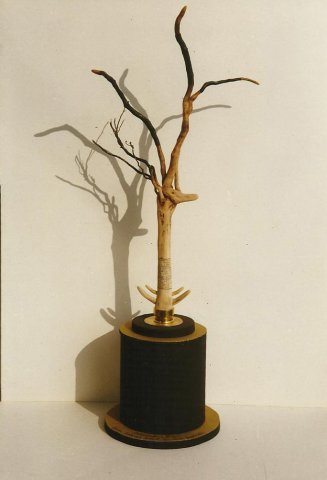 Metamorfózis-1993. Fa-réz 15 x 53 cm (Ajánlom Jankovovics Marcell Úr szÃves figyelmébe) Â